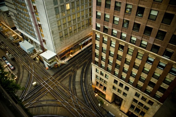 The elevated trains that have circled the city core since 1897 give downtown Chicago its name: The Loop. (Image: Ian Freimuth CC by/sa/nc)